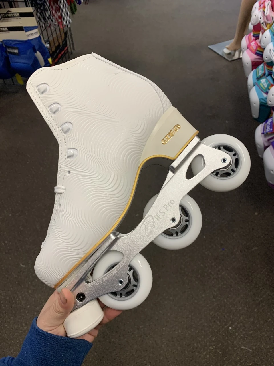 V & M& IFS PRO frame set is specifically designed for the recreatrional to intermediate freestyle skater and intermediate to pro level dancer. This frame is equipped with a highly finished powder coated aluminum and evenly spaced wheels for better balance, moves, edge jumps and spins. Comes equiped with ABEC 9 bearings, adjustable height toe pic and Outdoor wheels.