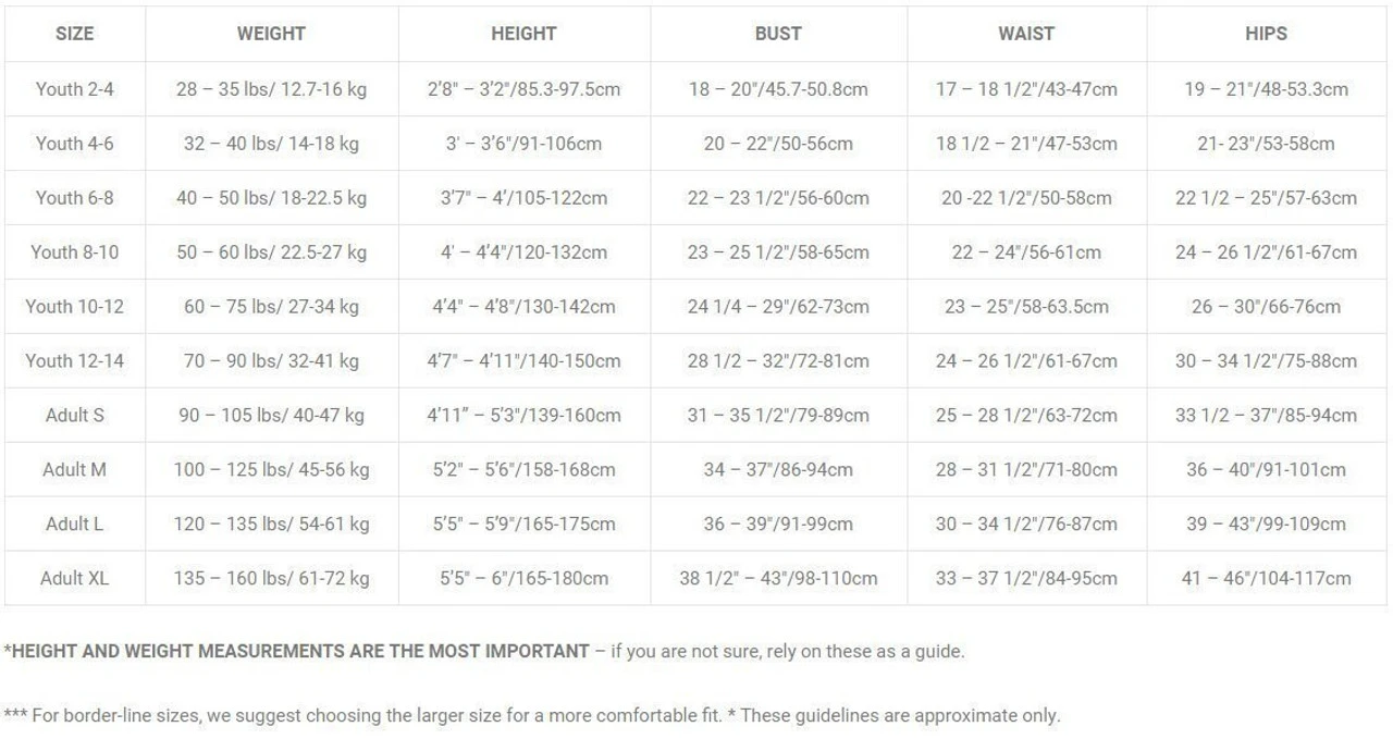 Sizes: Youth 4-6, 6-8, 8-10, 10-12, 12-14 – Adult Small