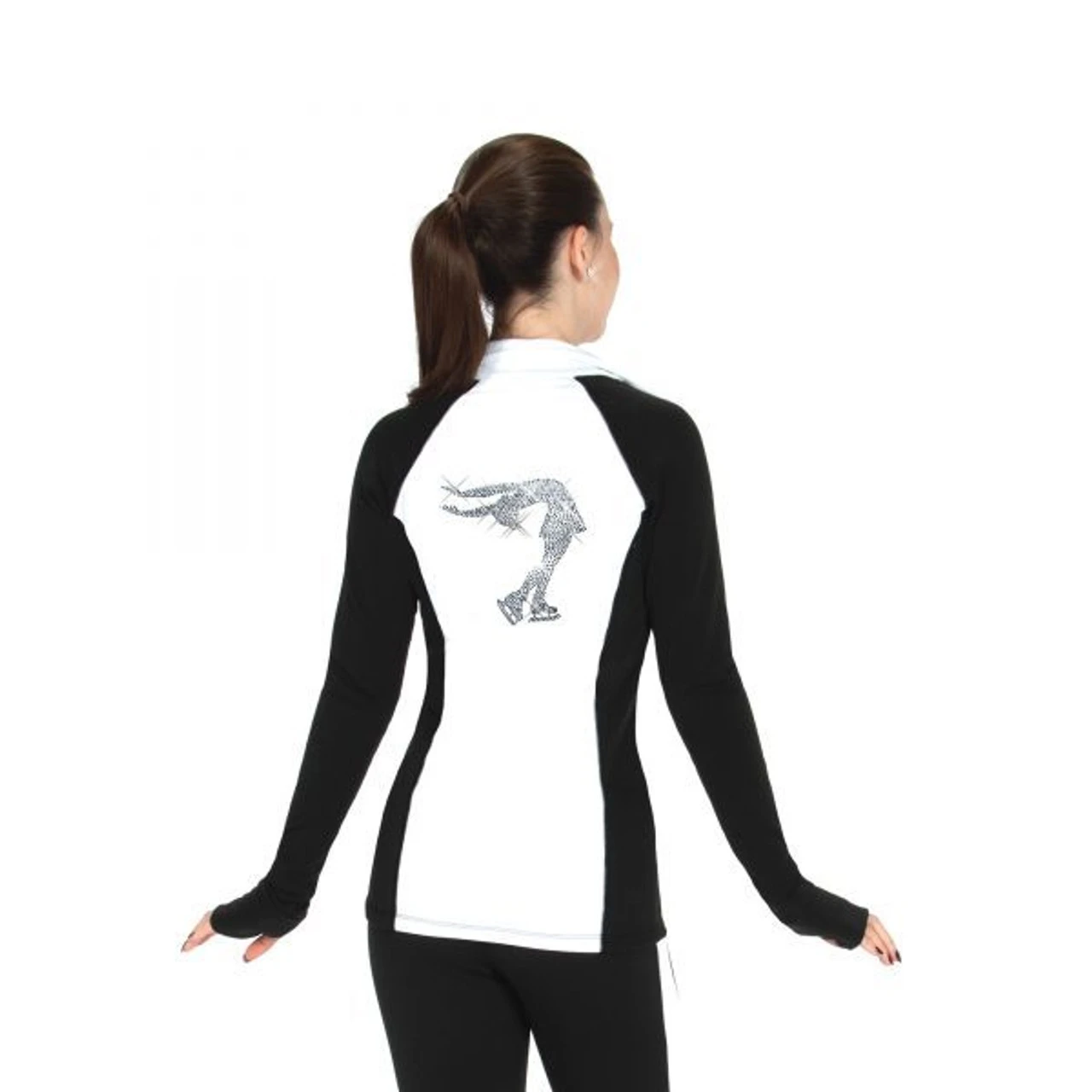 Warm power fleece jacket with a slim hourglass shape, long palm length sleeves with thumb holes and a crystal layback silhouette in jet stones at the back.