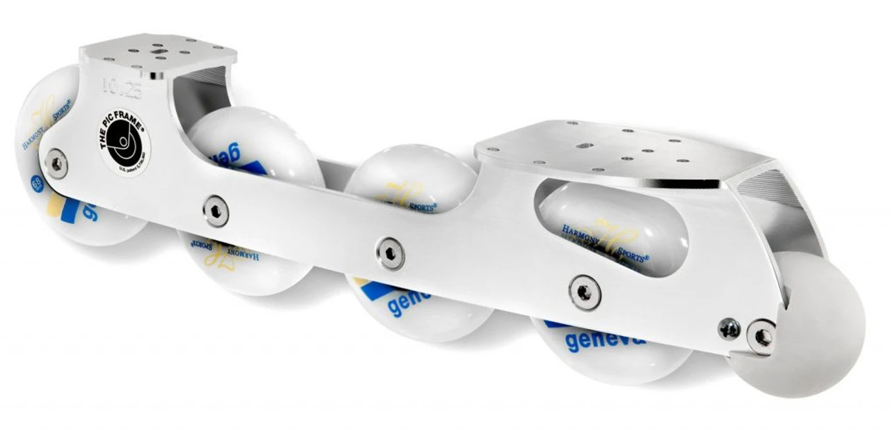 The 994 Pic J93 ¨ 4 wheel freestyle set is designed to stand up to the most severe skating; jumps, spins, intricate footwork. The highly finished rockered frame just keeps on going. The specially designed “Geneva” wheels housing ultra smooth ABEC 7 bearings, and P-11 Ball Pic make this the ultimate freestyle frame. (Set includes 2 frames, Ball Pics, “Geneva” wheels, bearings, mounting kit and instructions.) Sizes (inches) 9.25, 9.75, 10.25, 10.75, 11.37, 12.12