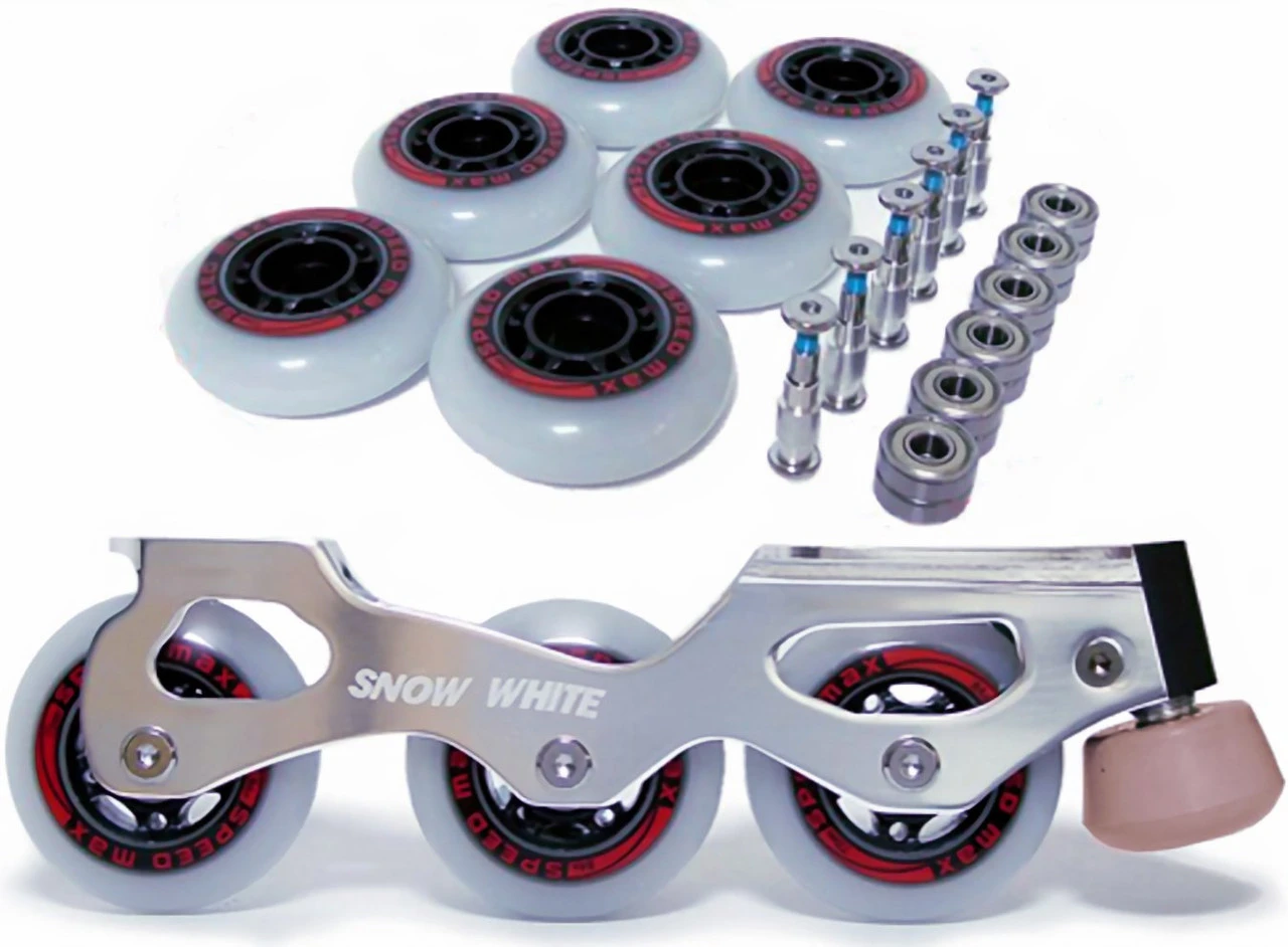 A ground-breaking design for artistic Snow White inline figure skates. The three-wheel rockered design is the latest step in the evolution from clunky roller skates to an advanced tool for graceful movement on wheels. The Snow White® inline figure skating frame is extremely lightweight and highly maneuverable. Inline figure skaters will love how the shorter frame length allows tighter turns and closer footwork. Inline figure skaters will love how the shorter frame length allows tighter turns and closer footwork.
