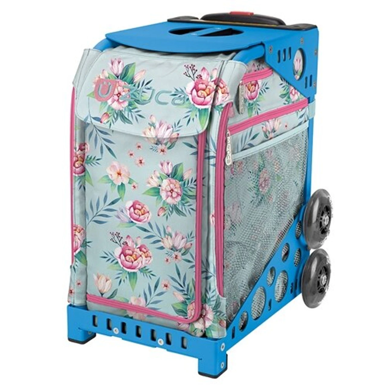 A true all-around athlete, the patented design of the ZÜCA Blooms Ice Skate Bag demands attention. Agile. Graceful. Absurdly versatile. And with a light, super-strong aluminum frame and oversized polyurethane wheels (they climb stairs), even school hallways and cracked sidewalks can’t slow its roll. Other sweet features? A removable hand washable bag. Wheels that flash. Tons of custom combos. And yes, a built-in seat. Ready for this ice skating suitcase? Game on.